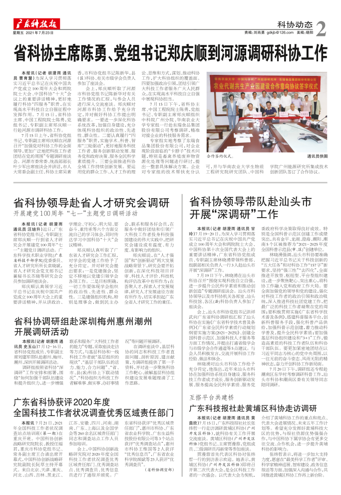 省科协主席陈勇、党组书记郑庆顺到河源调研科协工作