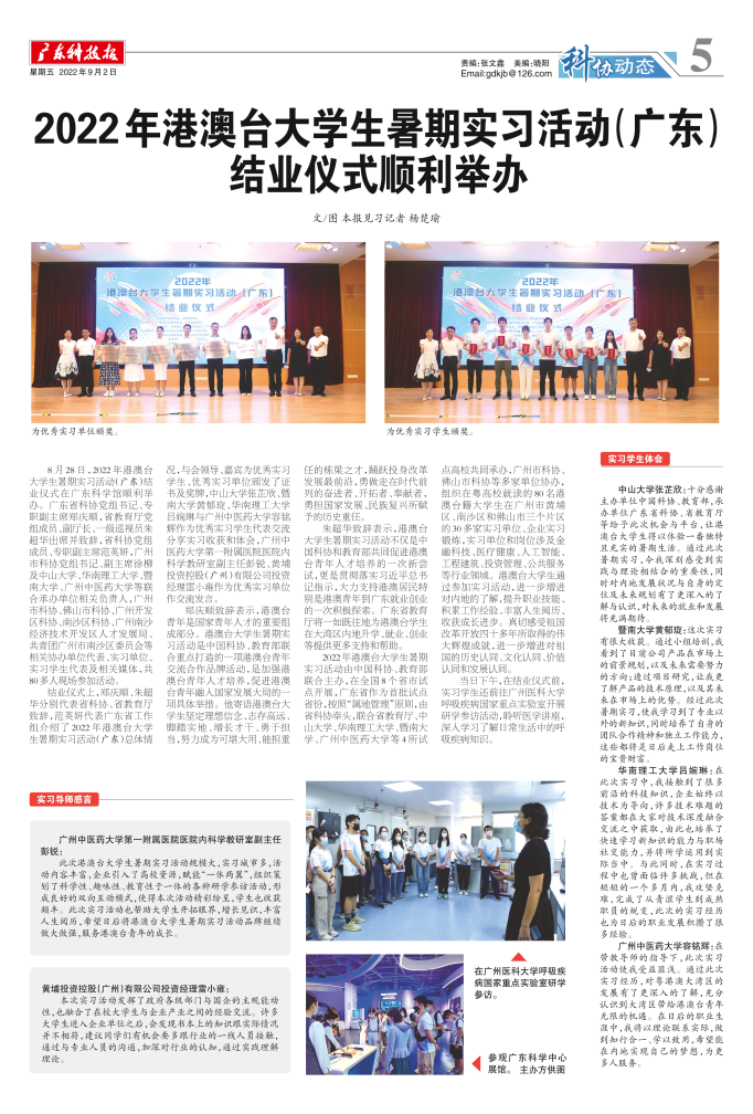 2022年港澳台大学生暑期实习活动(广东) 结业仪式顺利举办