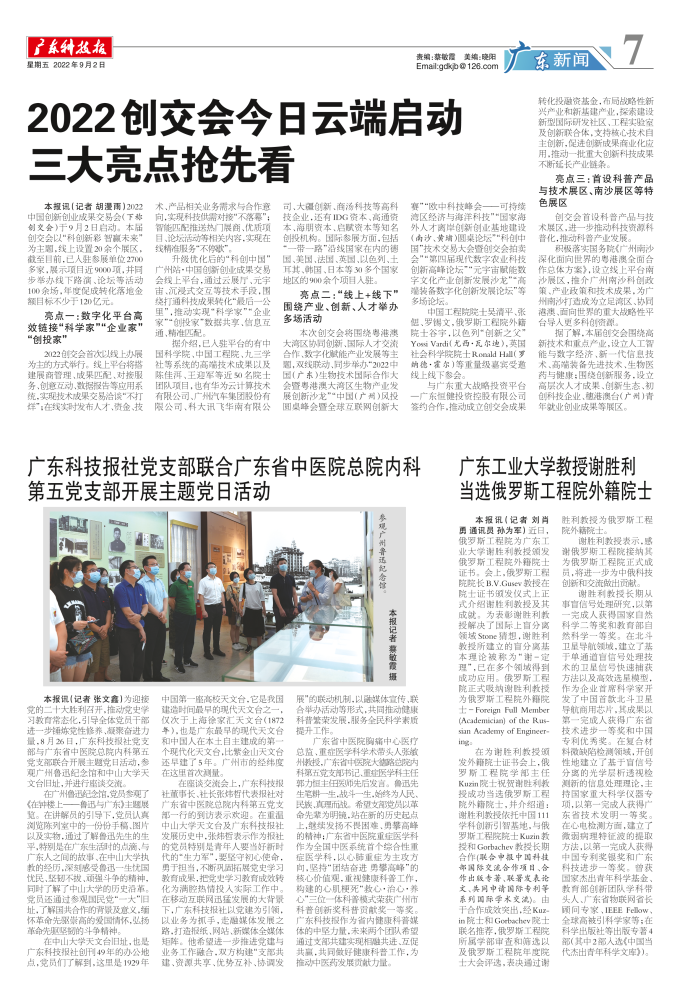 广东科技报社党支部联合广东省中医院总院内科 第五党支部开展主题党日活动