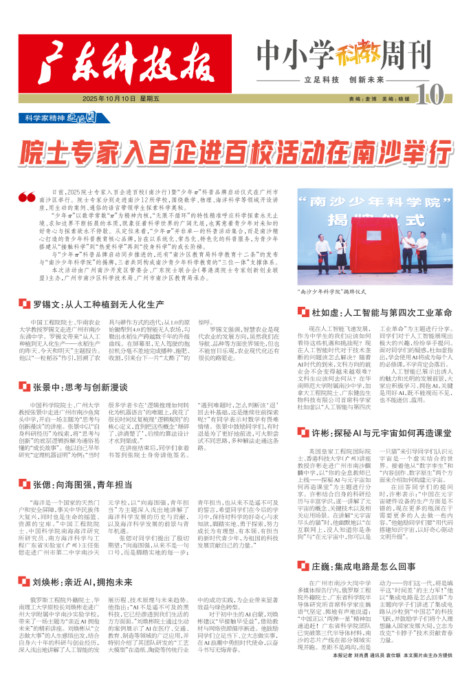 第四届院士专家广东校园行活动(第二期)举办 弘扬科学家精神,传播科学知识