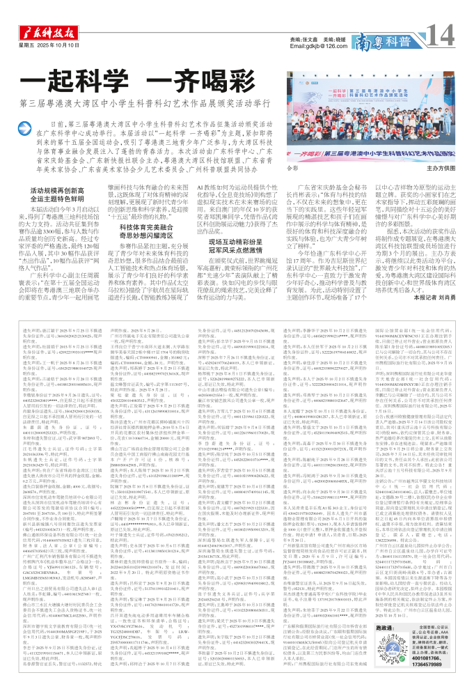 一起科学 一齐喝彩 第三届粤港澳大湾区中小学生科普科幻艺术作品展颁奖活动举行