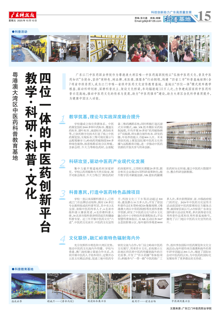 粤港澳大湾区中医药科普教育基地 教学·科研·科普·文化 四位一体的中医药创新平台