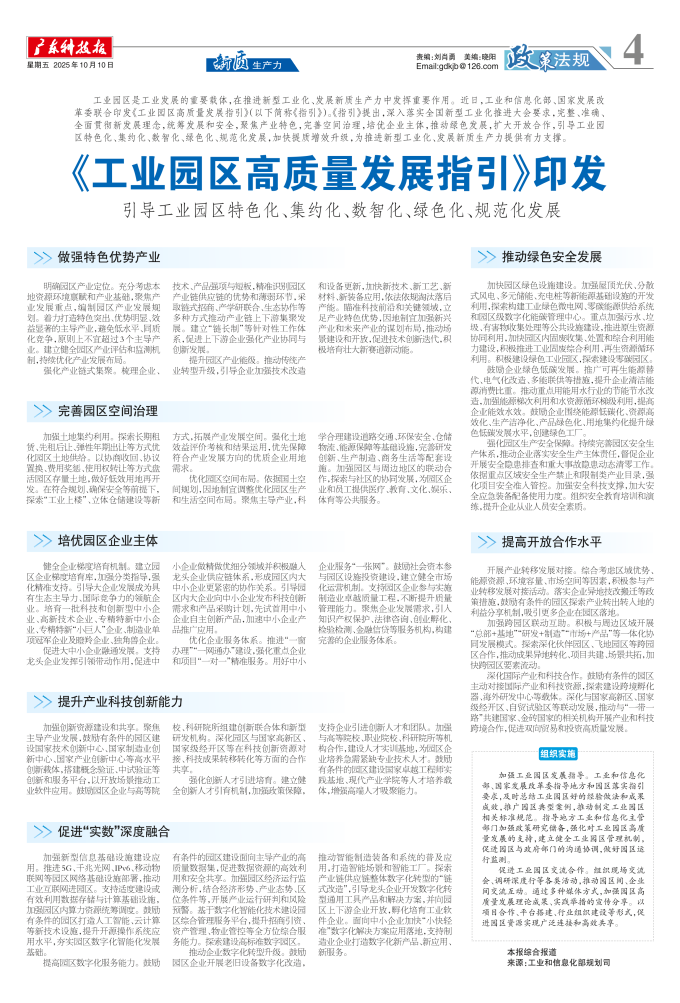 《工业园区高质量发展指引》印发 引导工业园区特色化、集约化、数智化、绿色化、规范化发展