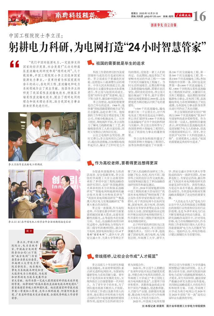 中国工程院院士李立浧:躬耕电力科研,为电网打造“24小时智慧管家”