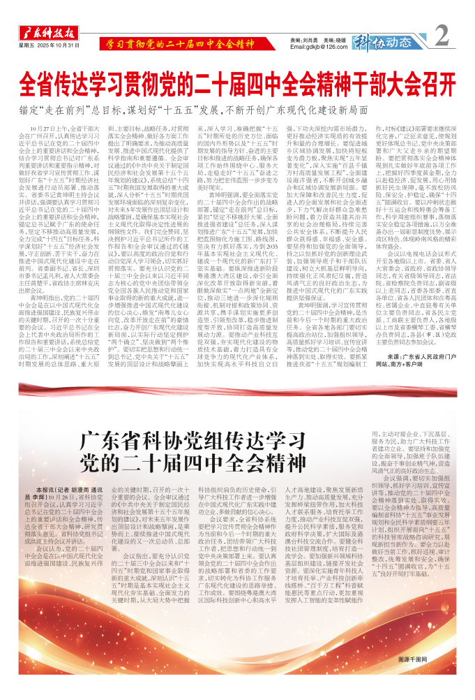 全省传达学习贯彻党的二十届四中全会精神干部大会召开 锚定“走在前列”总目标,谋划好“十五五”发展,不断开创广东现代化建设新局面