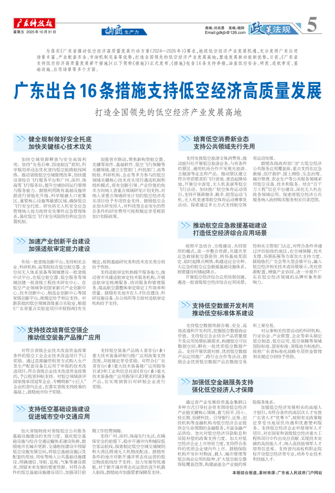 广东出台16条措施支持低空经济高质量发展 打造全国领先的低空经济产业发展高地