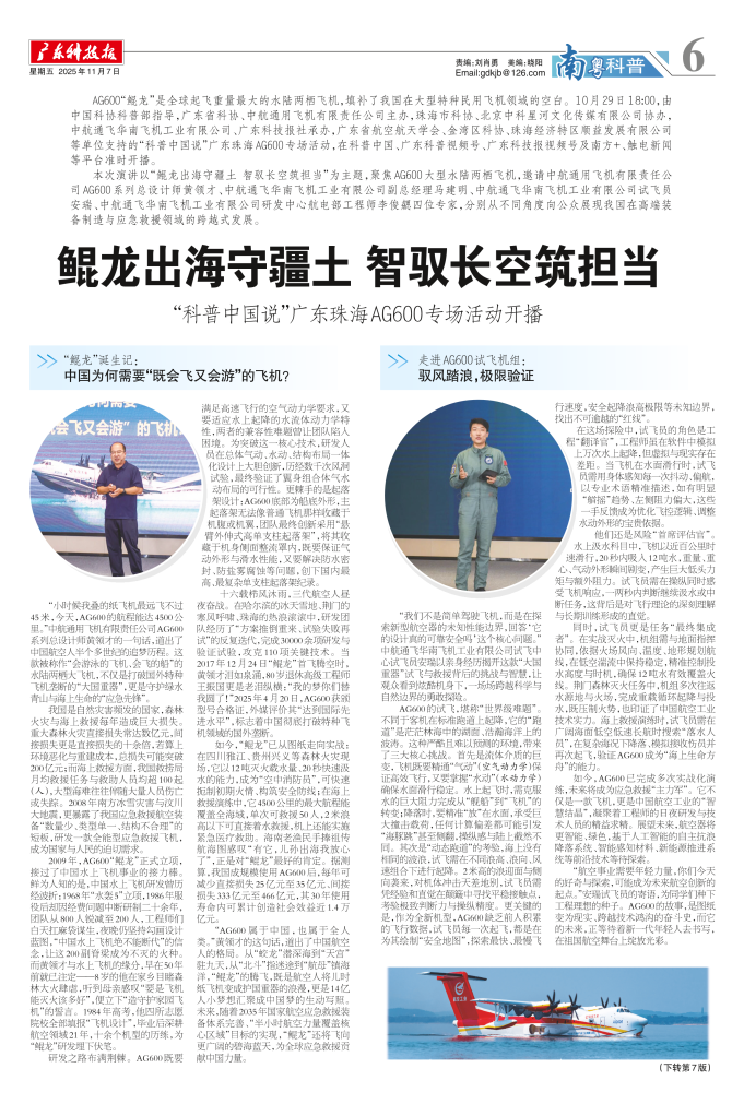 鲲龙出海守疆土 智驭长空筑担当 “科普中国说”广东珠海AG600专场活动开播