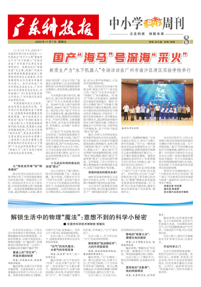 国产“海马”号深海“采火” 新质生产力“水下机器人”专场活动在广州市南沙区湾区实验学校举行
