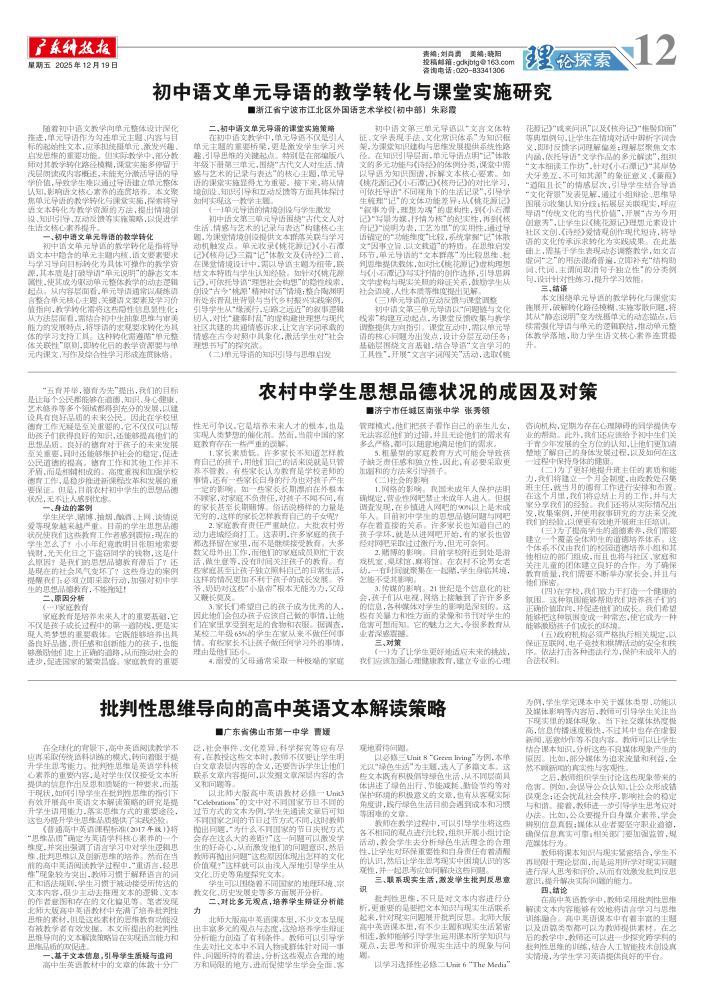 批判性思维导向的高中英语文本解读策略