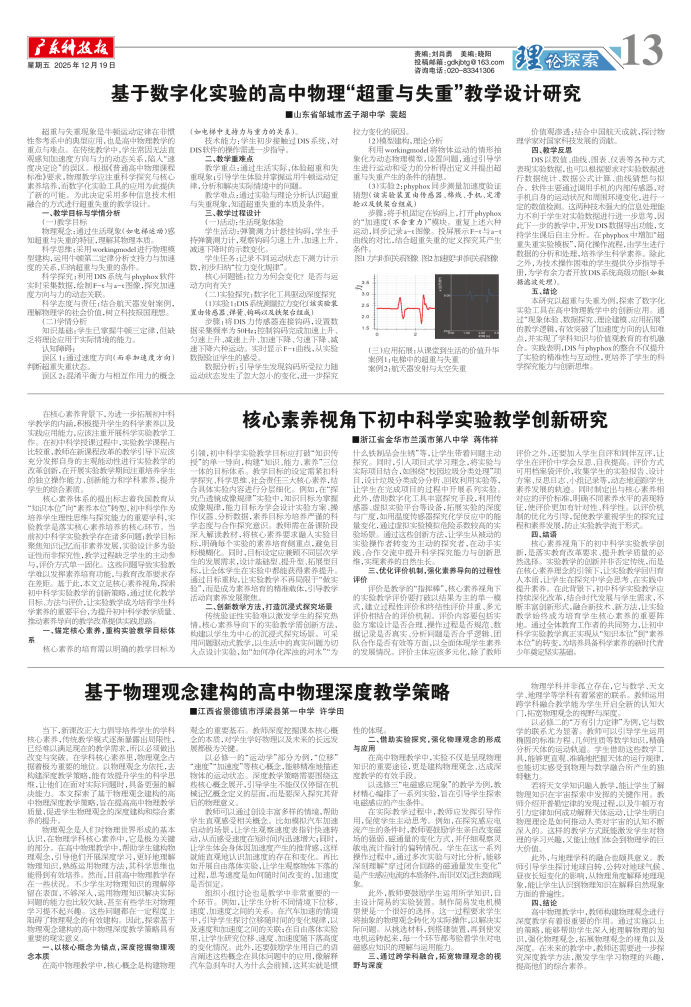基于数字化实验的高中物理“超重与失重”教学设计研究