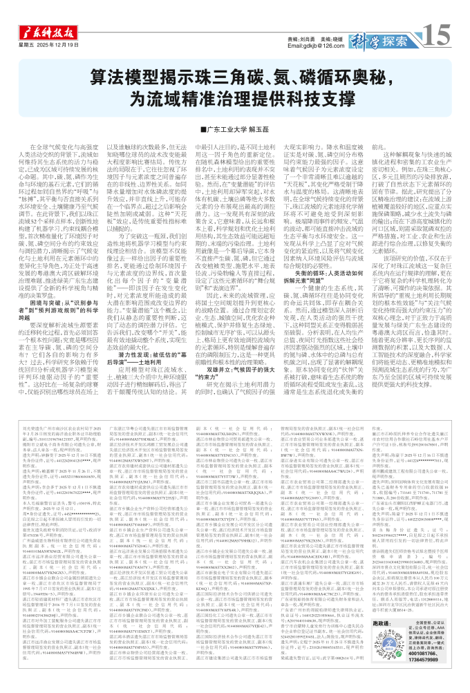 算法模型揭示珠三角碳、氮、磷循环奥秘, 为流域精准治理提供科技支撑