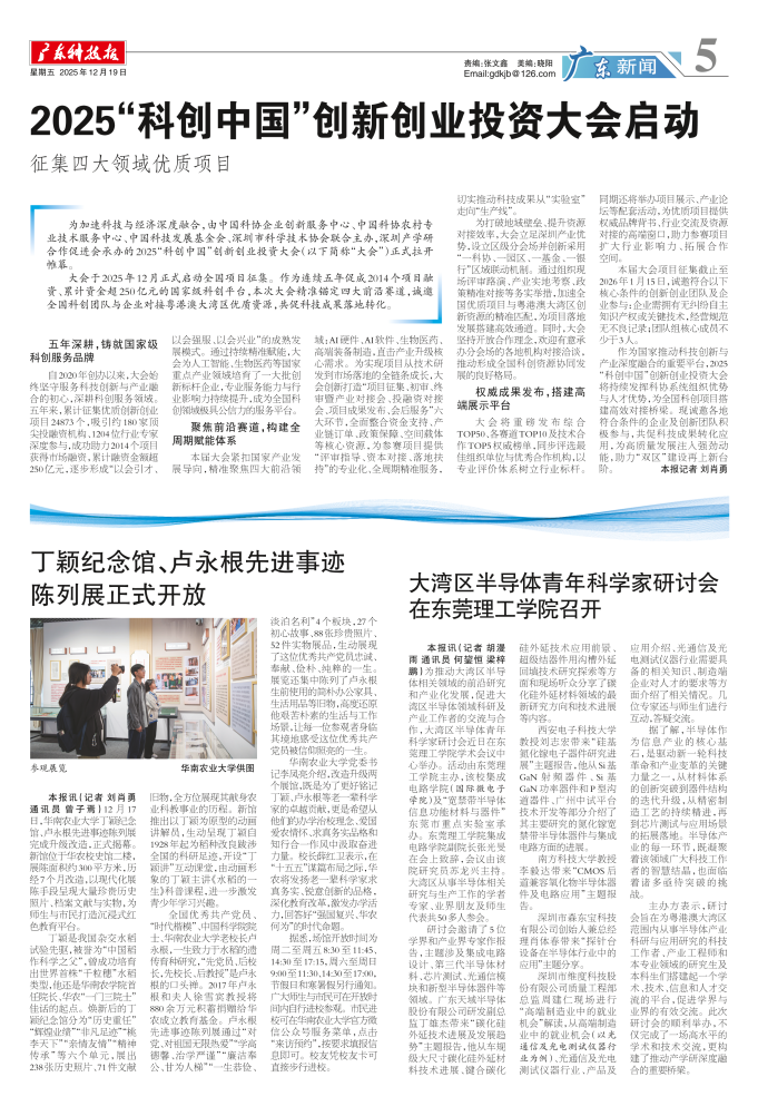 丁颖纪念馆、卢永根先进事迹 陈列展正式开放