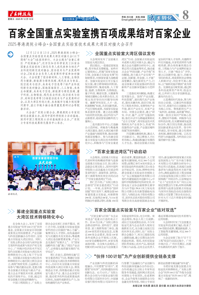 百家全国重点实验室携百项成果结对百家企业 2025粤港澳院士峰会·全国重点实验室技术成果大湾区对接大会召开