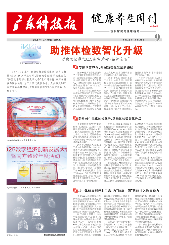助推体检数智化升级 爱康集团获“2025南方致敬·品牌企业”