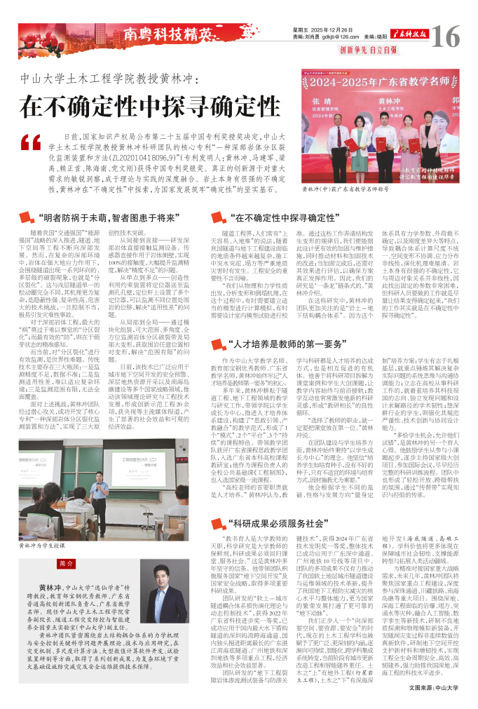 中山大学土木工程学院教授黄林冲:在不确定性中探寻确定性