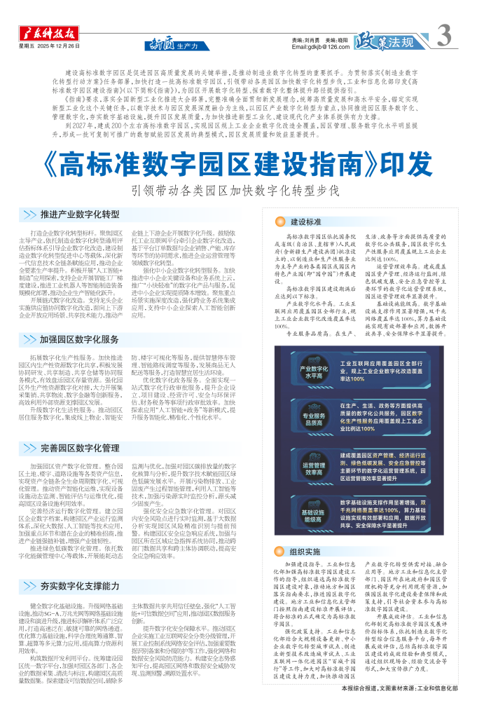 《高标准数字园区建设指南》印发 引领带动各类园区加快数字化转型步伐