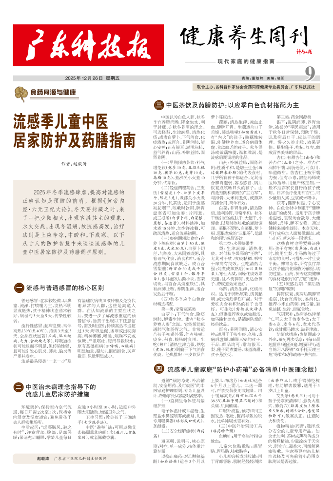 流感季儿童中医居家防护及药膳指南