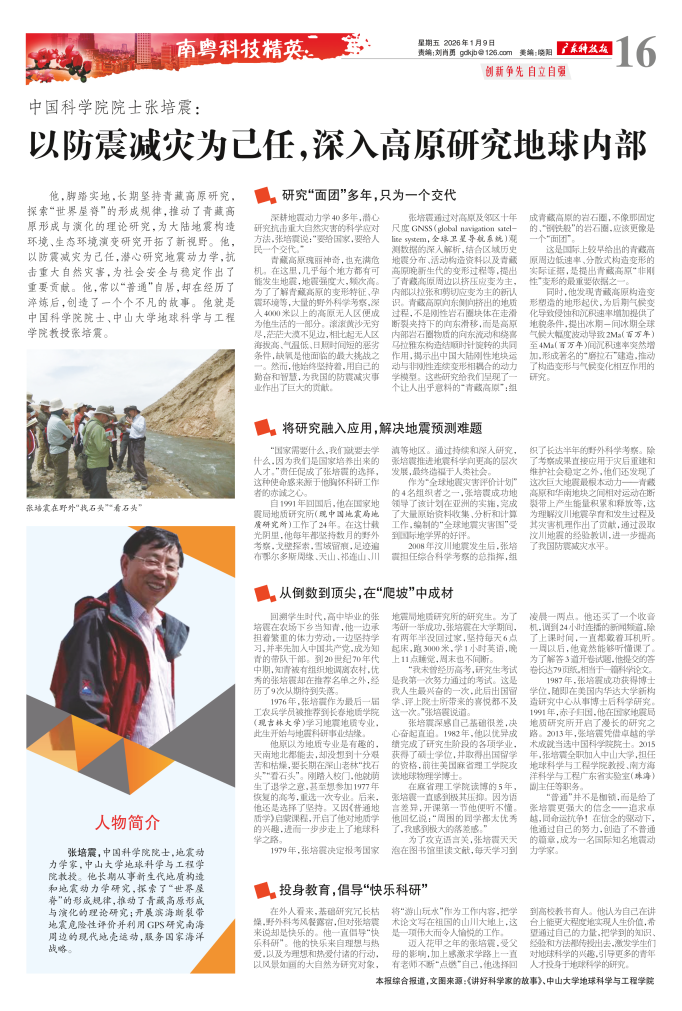 中国科学院院士张培震:以防震减灾为己任,深入高原研究地球内部