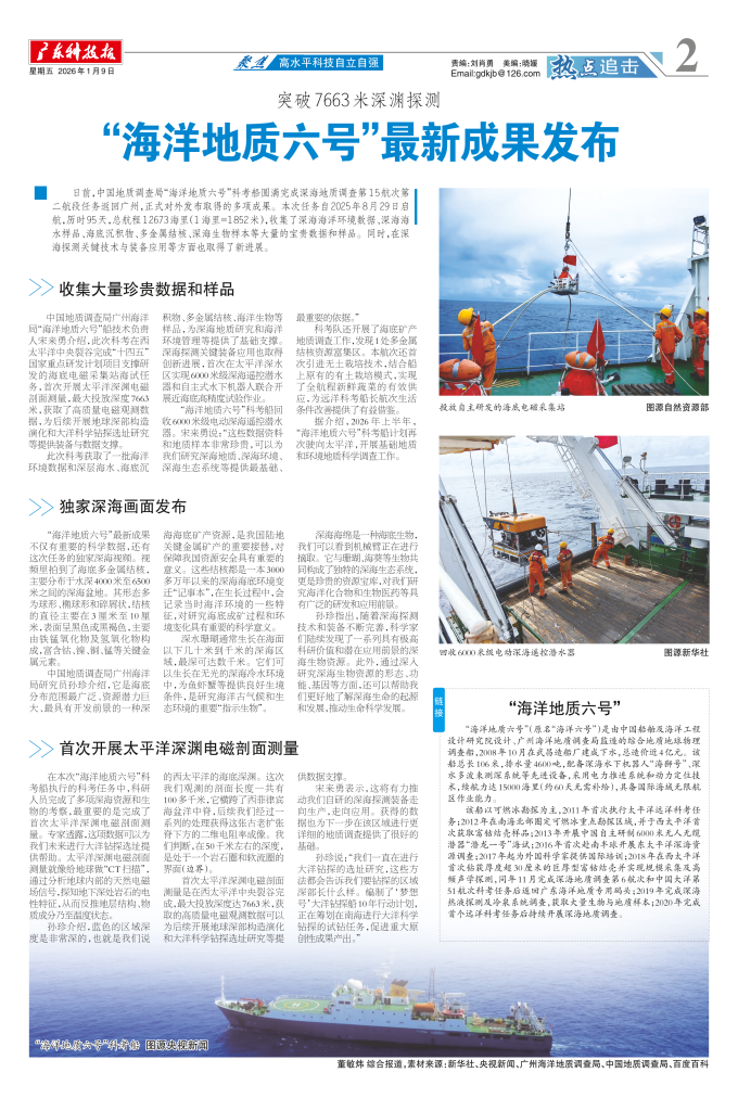 突破7663米深渊探测 “海洋地质六号”最新成果发布