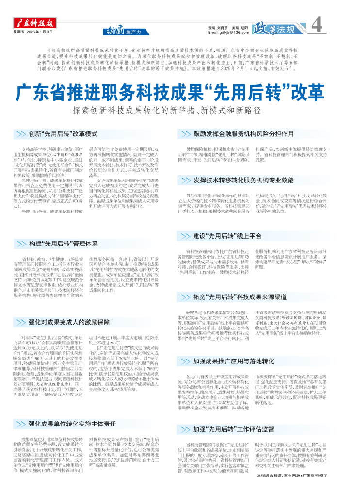 广东省推进职务科技成果“先用后转”改革 探索创新科技成果转化的新举措、新模式和新路径