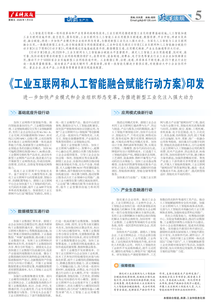 《工业互联网和人工智能融合赋能行动方案》印发 进一步加快产业模式和企业组织形态变革,为推进新型工业化注入强大动力