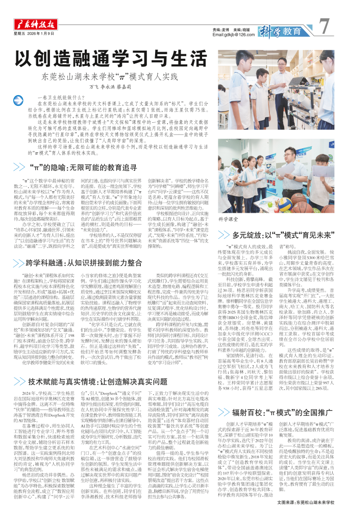 以创造融通学习与生活 东莞松山湖未来学校“π”模式育人实践